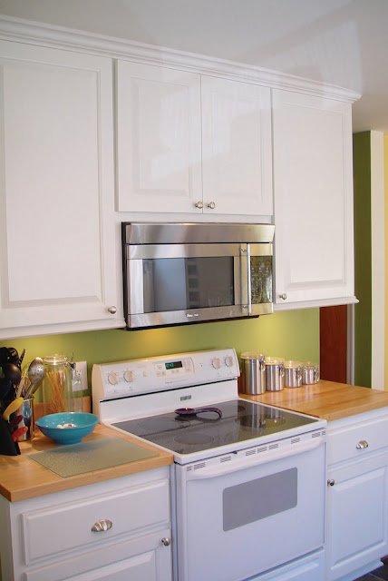 Nothing too exciting over here. The butcher block was salvaged from the kitchen and refinished. The above the range microwave is new. Not the kind of thing you want to install twice, which is why we replaced it with the remodel.
