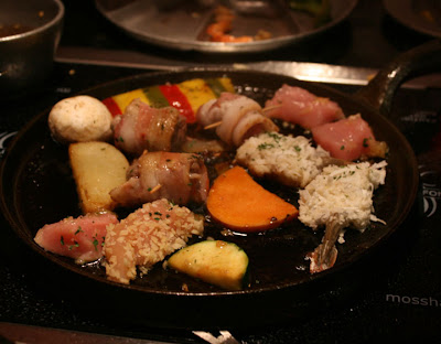 After we had the main course, six different types of meat and veggies. We choose to saute them rather than deep fry them, but still way fun and delish! Last a beautiful dessert- flambeed!