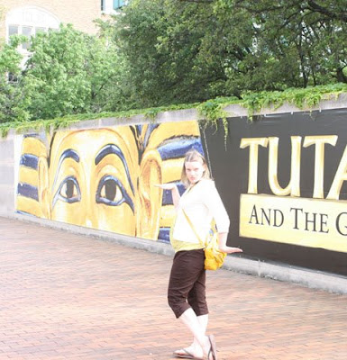 Next we went to see the King Tut Exhibition in Dallas. Yeah! I have been wanting to see this exhibit for YEARS! Chalk it up to the fact that as a child, I didn’t want to be a Veterinarian, or a Fireman, when asked what I wanted to be when I grew up, I would say an Archaeologist so I could work with mummies (I also wanted to be a teenager but that’s a different story) So I had to ya know, “Walk like and Egyptian”, but this is harder to do when you have no balance!