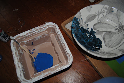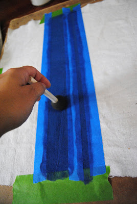 To give them a punch of color, I taped two strips to the back panels and painted them a blue color to match our dinnerware.