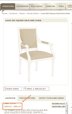 As soon as we got the chairs home, I started looking for inspiration of what I wanted the chairs to look like in the end. I first turned to some blog queens for their input and the amazingEmily A. Clark suggested a fresh coat of paint and new upholstery. I completely agreed and took to the web for some inspiration. The entire transformation began with this chair from Ballard Designs…