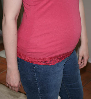 Lastly, I wanted to make some maternity pants, that didn’t have a waistband that was tight- meaning no elastic at all!! I am so anti-waistbands right no I can’t even tell you. I went to the local Salvation army and bought a pair of jeans (on a 50% off day- so $3.50, score!) They fit my legs and thighs, then I just sort of experimented with finishing the new knit waist band.