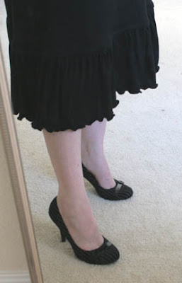 I hope you can see the ruffling I added. It is hard to tell with the black knit, what is going on.