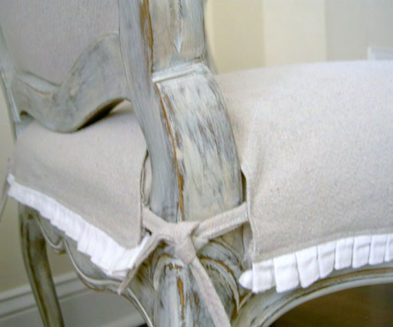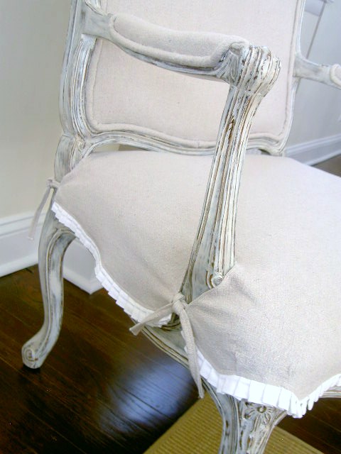 The pleated white trim gives the slipcover a finished look with a really feminine touch. And the