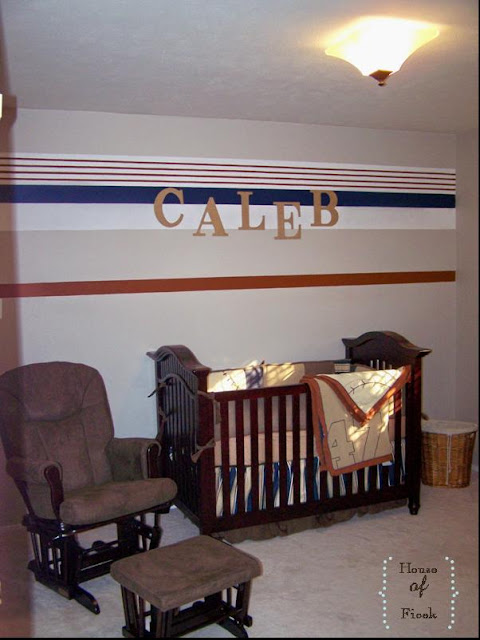 >I love the strips with Caleb's name…the room looks fantastic! Oh and not to mention the last pic of your darling guy grinning from ear to ear – priceless!
