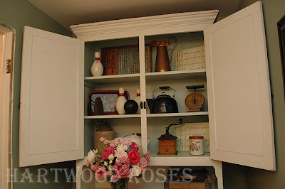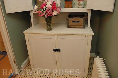 We decided early on that we didn’t NEED to have 5 full bathrooms in this house. The clawfoot tub was in good shape, but we wanted storage and display space instead. The tub went to Kat’s house in Maryland one day last spring, I found this cupboard at Luckett’s Store, and it’s perfect! (For the story of my trip taking the tub to Kat’s, click HERE. To see the trip to Luckett’s, click HERE.)