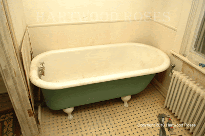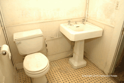 Before I go any further, let me bring those of you who may be unfamiliar with this project up to date. When we bought this house in 2002, it had 5 full bathrooms … three upstairs with bedrooms, one on the main floor adjacent to the office, and one in the basement. The plumbing in the basement bathroom leaked, so we disconnected the fixtures, closed the door, and vowed to renovate it after we did most of the rest of the house. Early this year, we decided that it was a problem not having a bathroom we could access without going through the finished living space of the house. We’ve been stomping through the upper floors whenever we had to use the ‘facilities’, removing dirty boots or tracking stuff through the house. I also wanted to have a bathroom that was more easily accessible for guests when I have garden gatherings here. The basement was our answer, and I wanted to make it pretty, while acknowledging its original construction in the 1940’s.