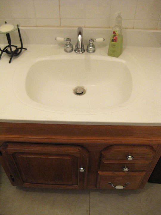 The sink seemed like it was below normal height and I could never get the drain completely clean either. I didn’t care for the light wood either.
