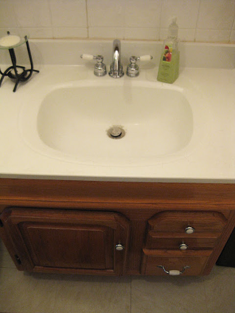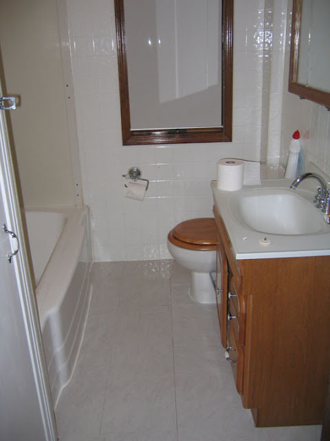 This is how the bathroom looked when we walked through, before buying the house. It probably looks better than it did up close.
