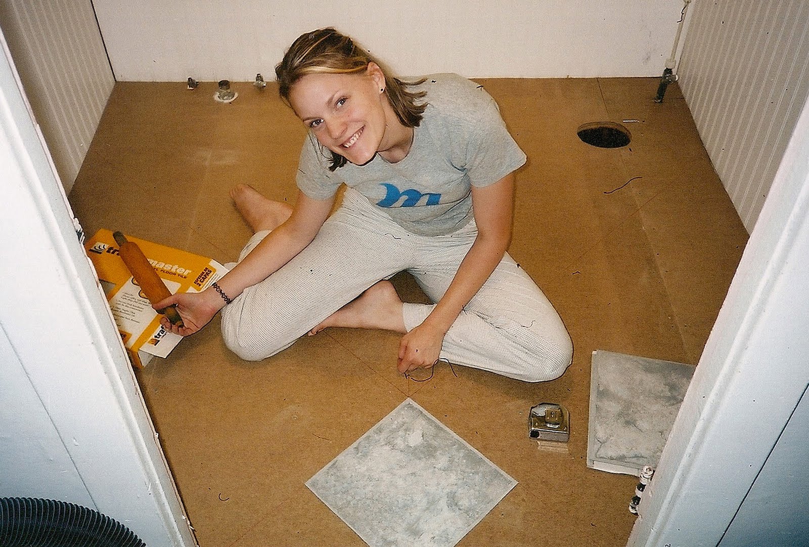 Actually, this project all started from me getting food poisoning. We had just moved in, and were basically camping in the one clean room in the house. We were about to go to sleep when the dinner I had decided it didn’t like me. I ran to our porcelain receptacle, and I had to sit on the most disgusting floor you can imagine, in my underwear. YUCKY!