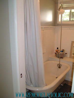 Oh, and doing the floor meant moving that huge tub! We took the opportunity to switch the front feet with the back feet. As you can see, the back had never been painted. I took them and spray painted them silver, it looked pretty cool.