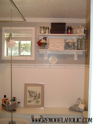 **in that mirror picture you can kinda see the shower bar! I just noticed that! Here are the shelves we built, mostly out of scraps.