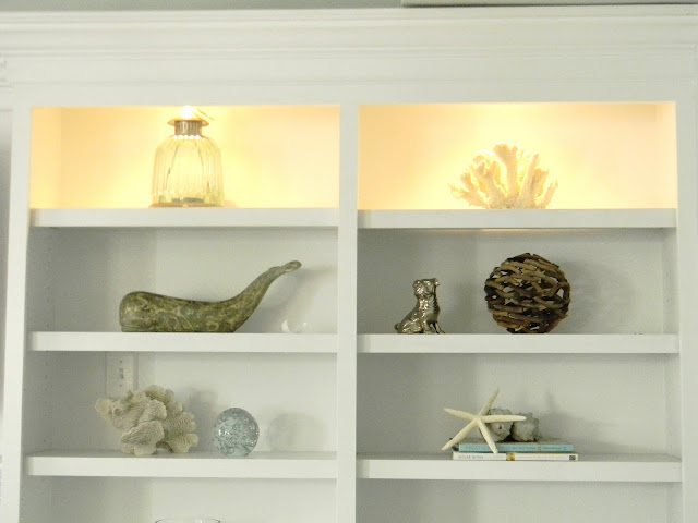 I found all of the Coral for the bookshelves at Marshall’s Dept Store. They currently have a really nice selection of beach themed items.