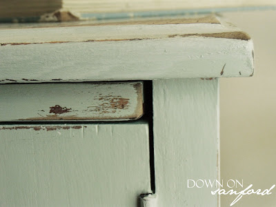 The color is a bit hard to decipher from these pictures. For some reason my camera kept capturing it all different ways. It’s actually a light robin’s egg blue which I mixed myself using a variety of old paints.