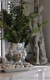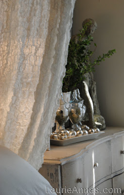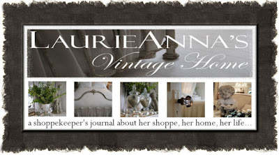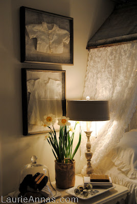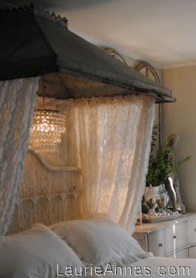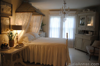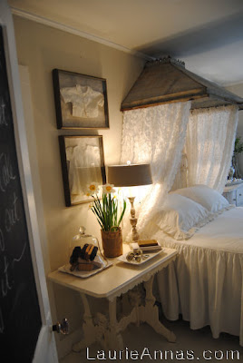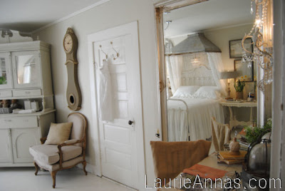 >This is one of my favorite bedrooms ever! Laurie's style is amazing. I was the lucky winner of the hour glasses from Laurie Anna's Vintage home…they are wonderful.