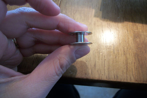 Then by hand loosely wrap the elastic thread around your bobbin. Try not to stretch it out while you wrap it.