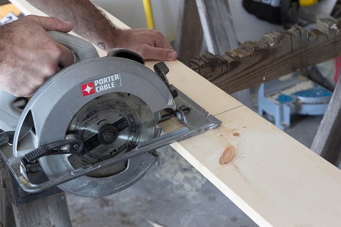 You can make all the cuts you need with a good ol’ circular saw. A table saw will save you time, but a circular saw will get the job done. For shorter cuts or smaller jobs, a smaller handheld circular saw can be nice, but a larger circular saw is more versatile for other projects since it extends the thickness you can cut.