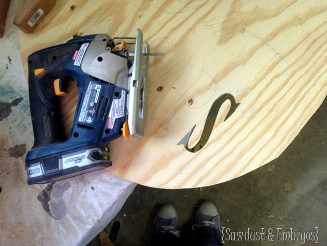 For curves or circles, you can use a scroll saw or jigsaw to cut curves and circles like Reality Daydream used for her plywood quote sign.