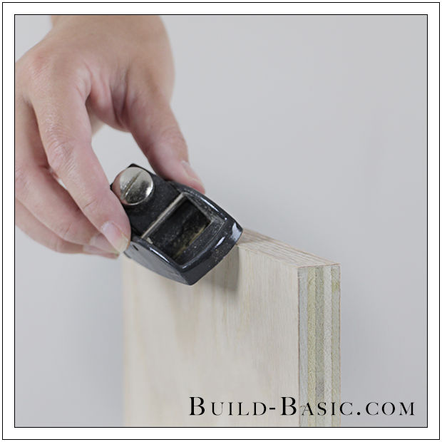 If you will have open end edges, always sand them slightly round. Plywood is flaky on a cut edge, and sanding them round (like Blaine did on this creatove upcoming project) helps ensure a clean finished edge.