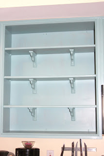 Your husband did a great job and I love the molding and corbels that were added in the open cabinets… those are the kind of details that really make a difference!