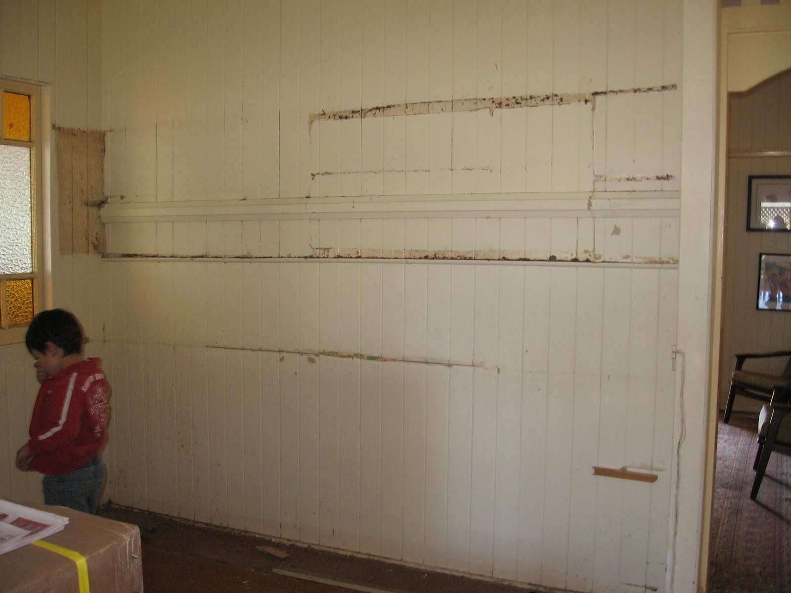 There was also a small casement window in this area. We believe, the original bathroom would have been in this spot. And that’s Number 2 son picking his nose, I would say.