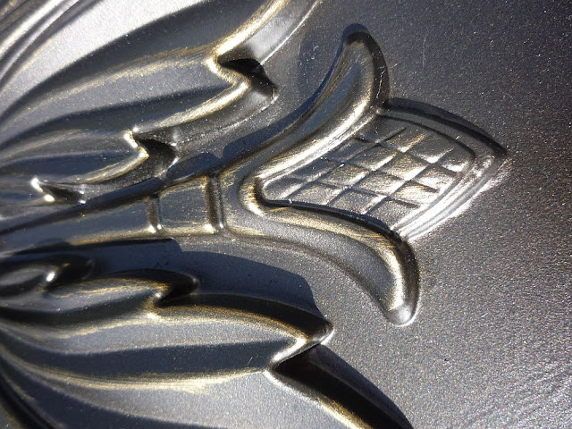 To dry brush, start with a dry brush. Now did that sound intelligent or what? Squirt a little paint out on some newspaper and dip the tip of your brush in it. Brush most of the paint back off on the paper. Then very lightly brush the gold onto the raised areas of the design that you want to highlight. Remember to use very little paint and brush very lightly. You can always add more paint if you need to. Keep a damp paper towel ready so if you do use too much, you can very quickly wipe it back off. If worse comes to worst and it’s already too dry to wipe, all is not lost…just spray another coat of ORB, let it dry, and start over.