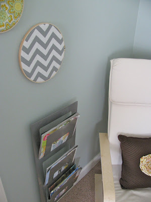 I also made a little reading corner in our room with a chair I bought at IKEA for only $49… And it’s actually comfortable. The side table was $7 at IKEA and the magazine rack was $9.