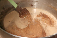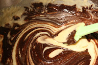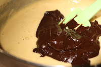 When chocolate and butter are smooth like above, add them to the first batter and combine.