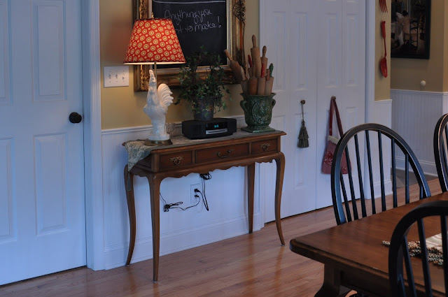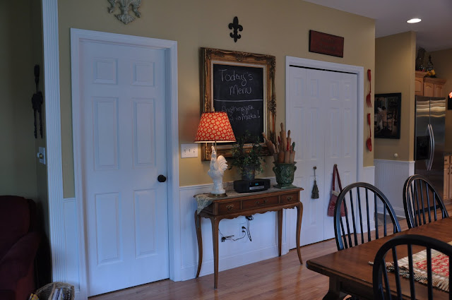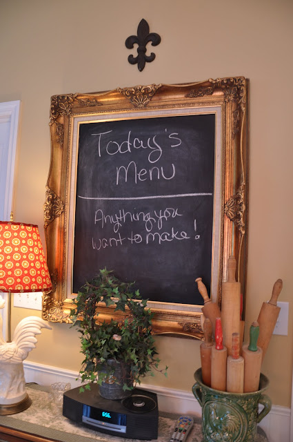 The chalkboard was covered in another post. You can look at it here. I made it from a frame I got at a consignment shop.