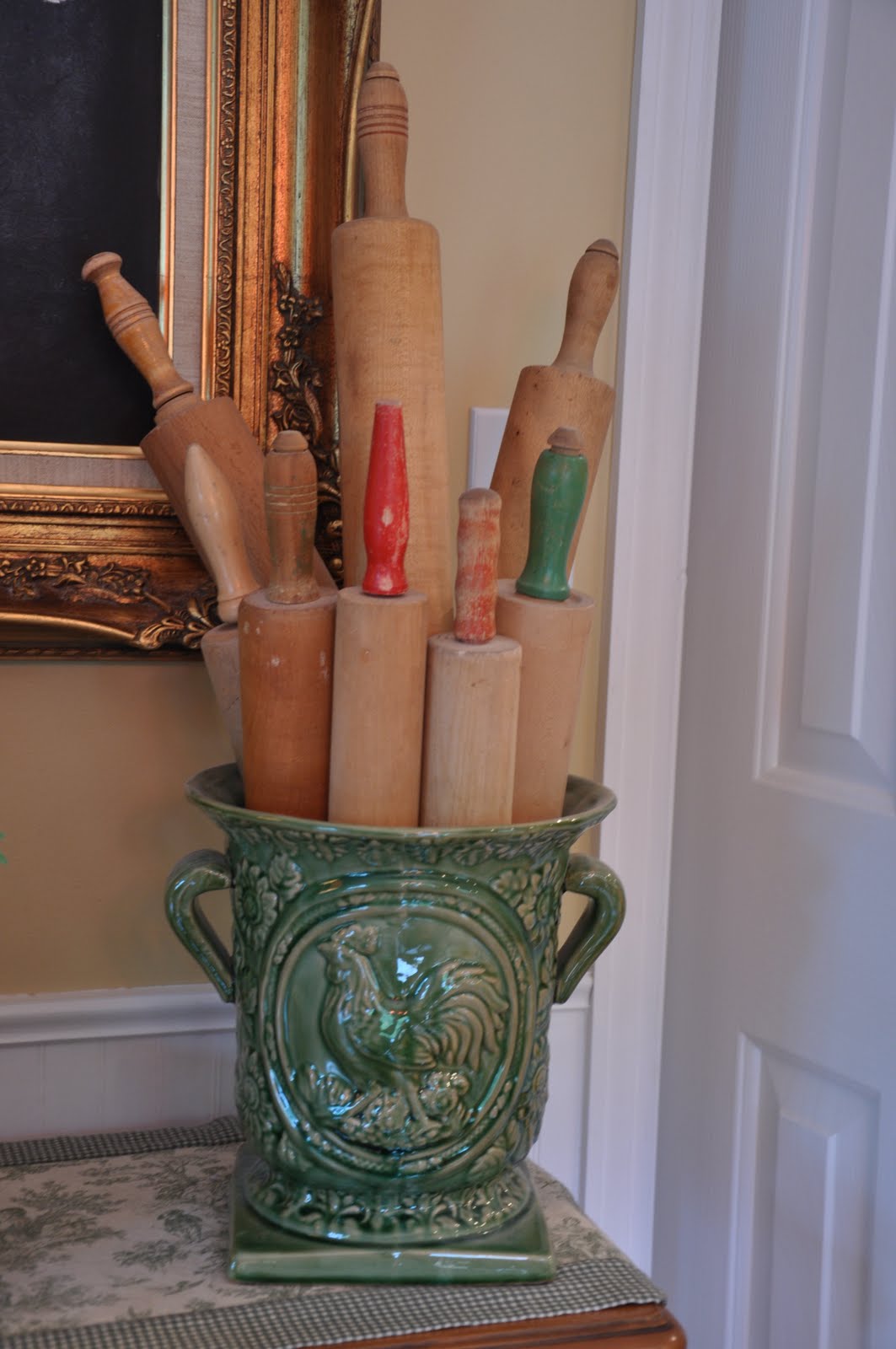My rolling pin collection are all from thrift stores, I don’t think I ever paid more than $2 for any of them. I got the crock at a AJ Wright.
