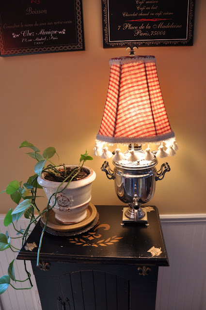 My coffee lamp! It’s a vintage coffee maker turned into a lamp, found it this way at City Mission for $5.99! Can you tell I like lamps? Another obsession of mine!