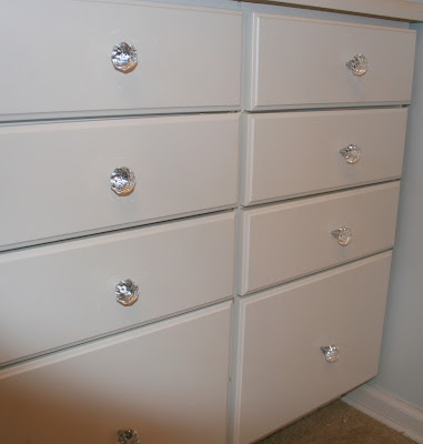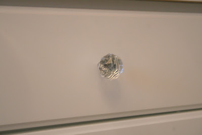 I added these built-ins when I first moved in to my house, but I did purchase new drawer knobs during the redecoration.  I like this glitzy look, and I think they go well with the new chandelier.