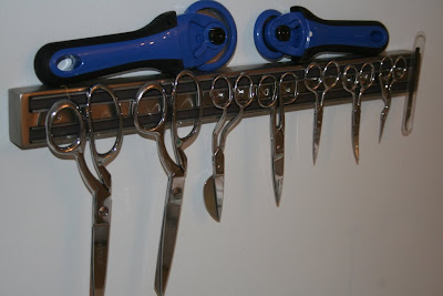 I used a magnetic knife organizer from The Container Store for my collection of sewing scissors.
