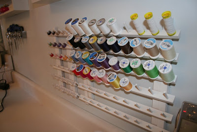 I spray painted these thread organizers, and hung them behind my sewing machines.