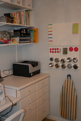 This party link is just up my alley right now, as I too, am trying to organize my creative space.  I think the new calming space is great!  (although I have to admit I like the bright before as well!  Am I the only one that likes both spaces?)  Here is the  Big Reveal from Persnickety Peacock.