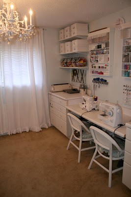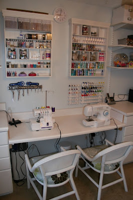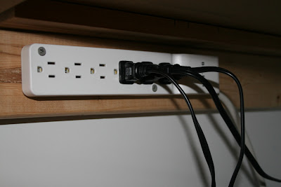 This might be my favorite functional item…I attached serge protectors under each side of my desk.  Now I can plug in my sewing machine, serger, iron, lamp, phone, stamp embosser, etc., all at once.