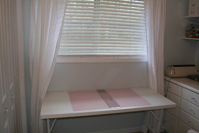 Best part of the cutting table…it folds down too.  Oh, and I sewed new curtains (which need to be fixed on one side, so I’m not going to show you a wider picture).