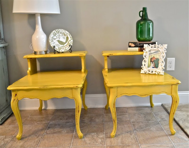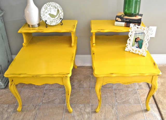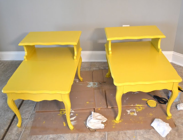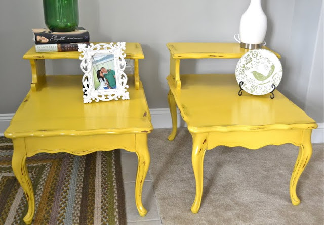 I felt like these retro styled tables needed a retro color to liven them up… I wish my house needed some yellow tables, because I love the finished product!
