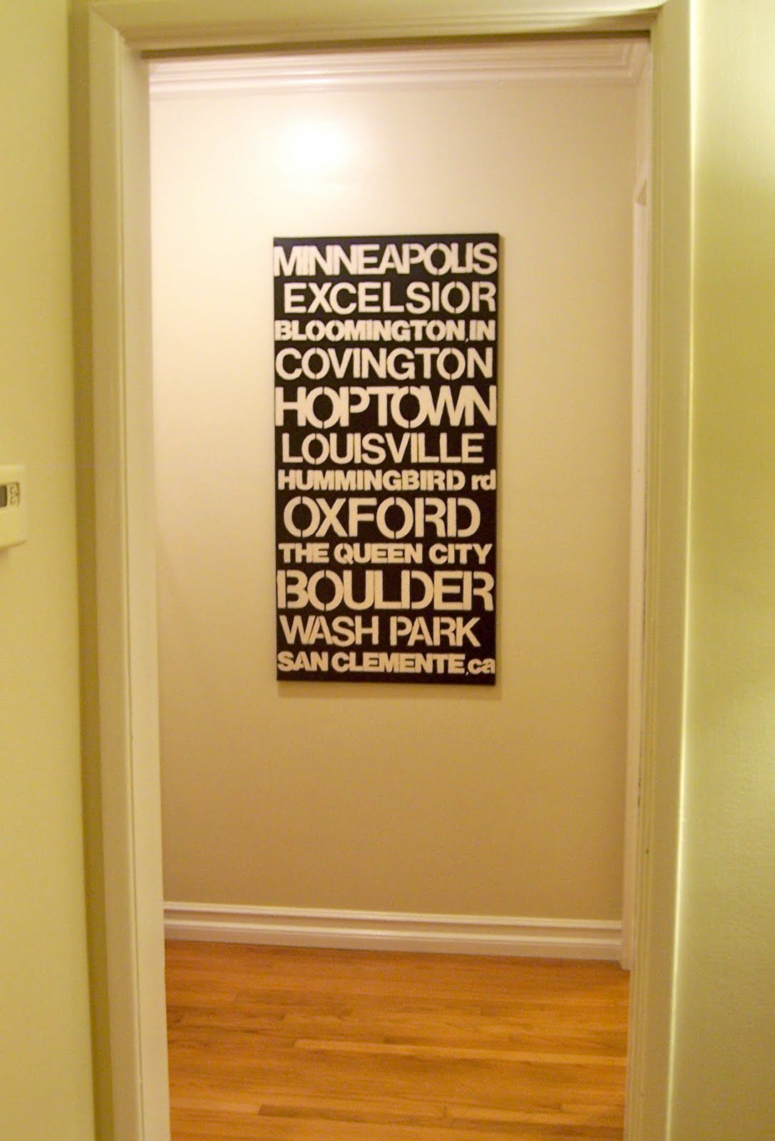 Well, we have been seeing these destination art pieces pop up all over right? So I thought I would show you this tutorial that Emily from Mini House was kind enough to send to me, in case you too want to try your hand at it!