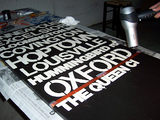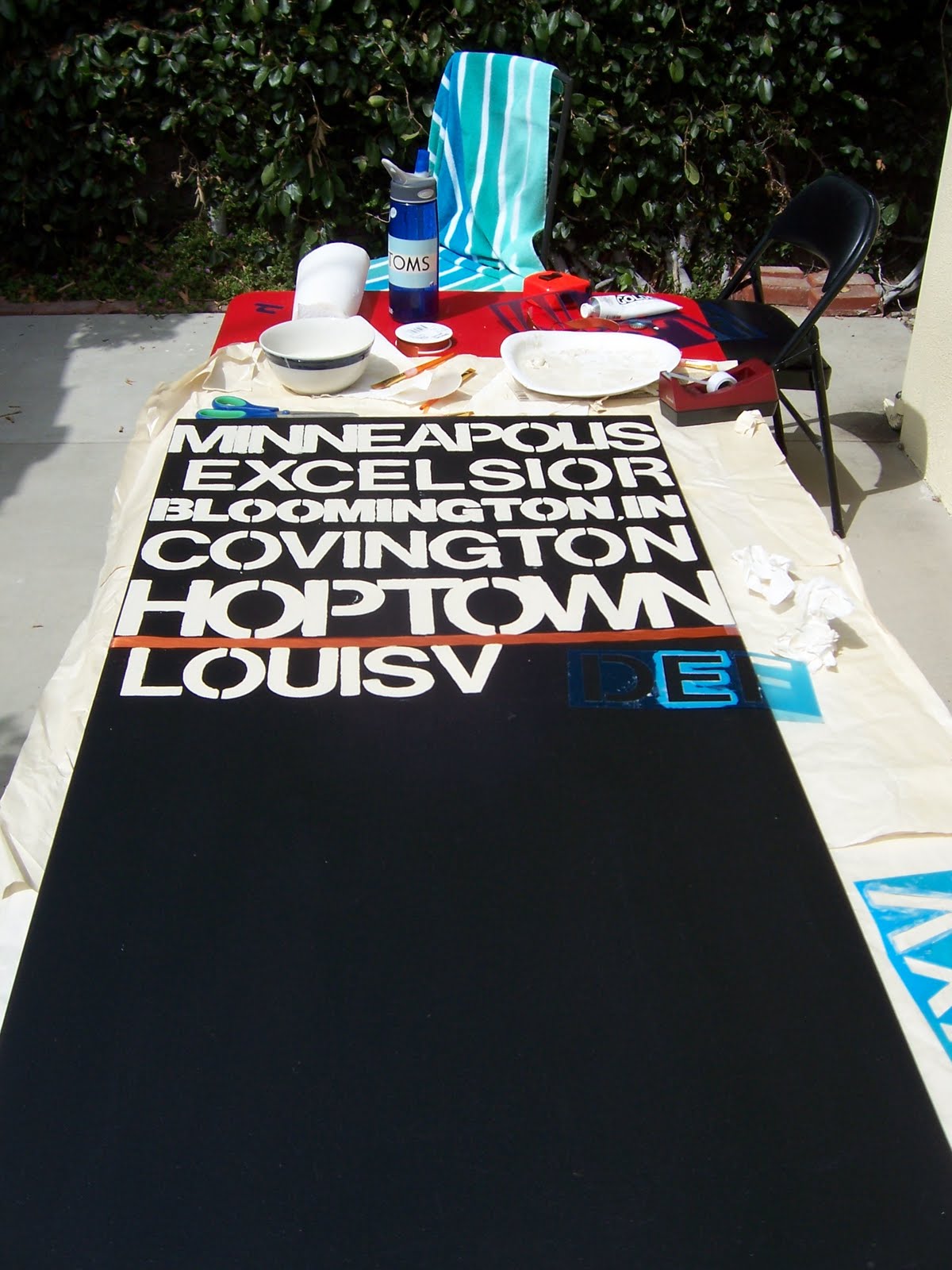 We were working three different sizes of stencils so in some cases where we thought we’d use a 4″ inch stencil, we had to swap for a 3″ inch because there wasn’t enough room. (As you can see with the Excelsior mishap below).