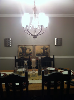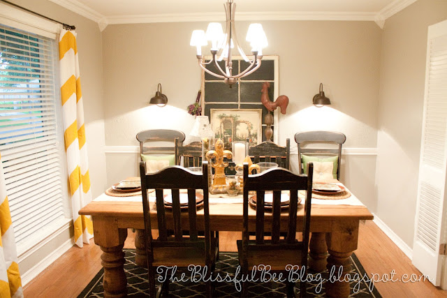 Dining Room – Lighting, Tablescape And Chevron Painted Curtains