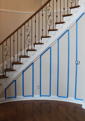>It's gorgeous as it is. Think adding stripes to the curved part of the stairs will be too much.