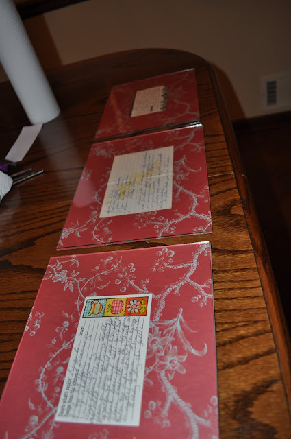 Glued it to the frame backs and then glued the recipes onto that.