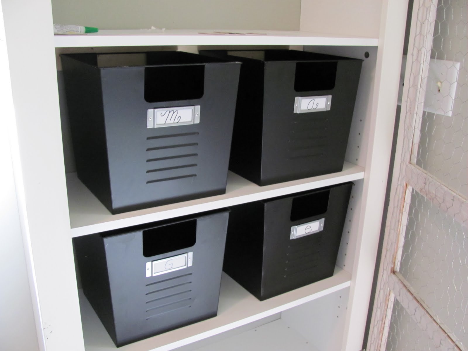 Put these little metal baskets that I also found at Target in and labeled them with the first letter of our names.
