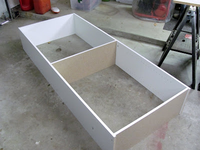 Then we added another frame to the shelf, this time on the front to give it more of a clean look and also to be able to hang the screened door onto it.