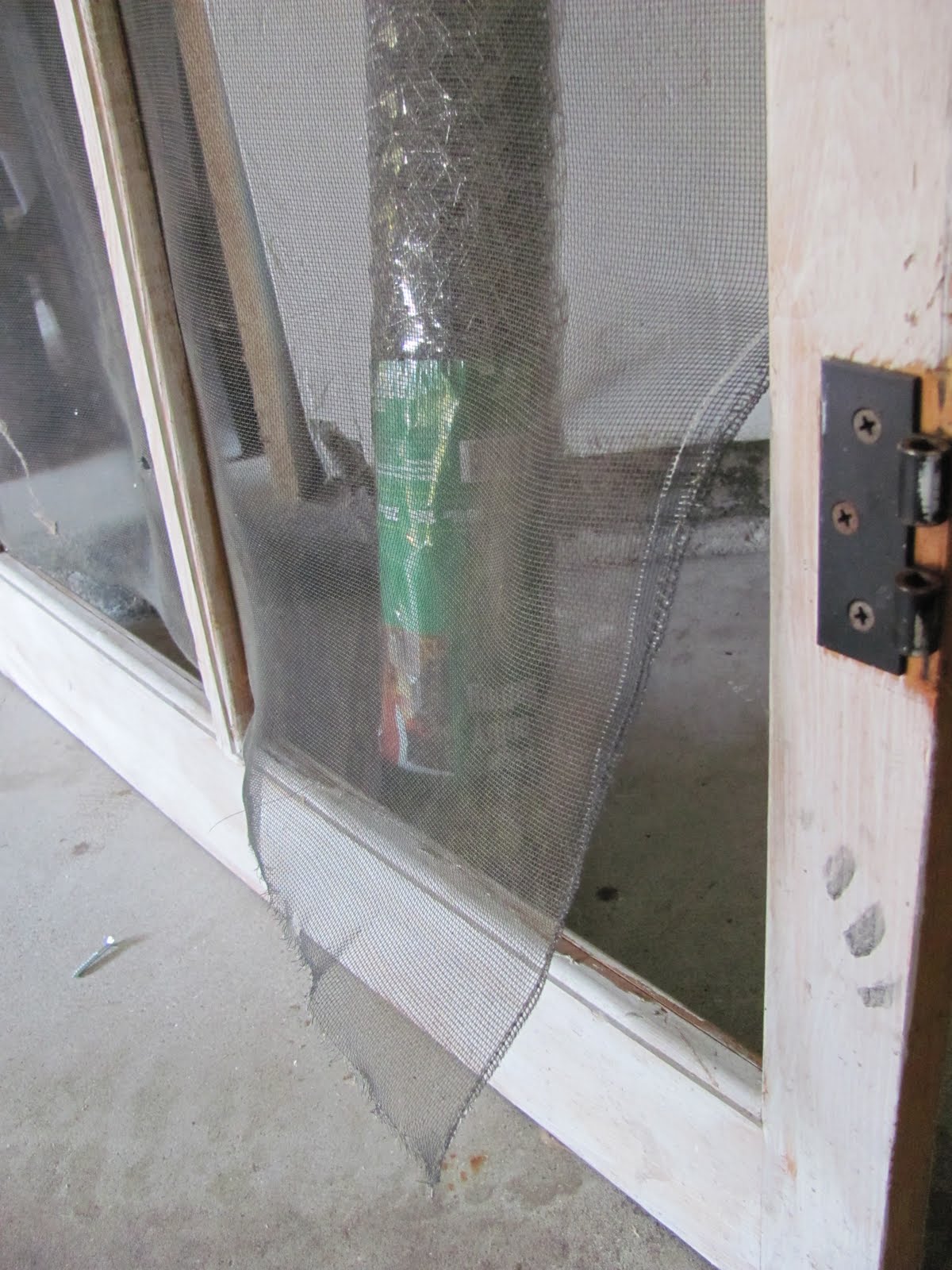 While the paint was drying I moved on to the screened door. This door was hanging in our garage entry to this particular room but we had removed it because it was in the way of my brother-in-laws wheelchair and it was slowly falling apart.