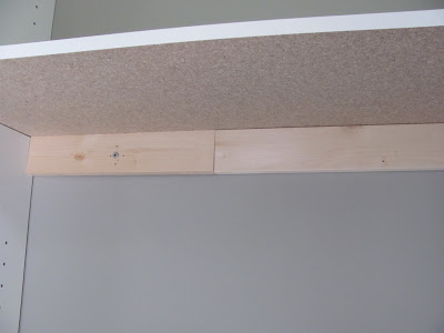 Screwed in a board onto the bottom of the middle shelf in order to anchor the whole thing to the wall.