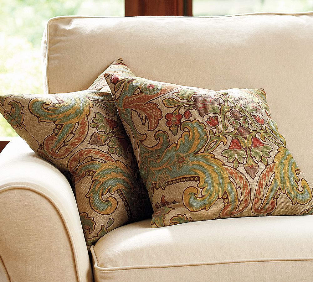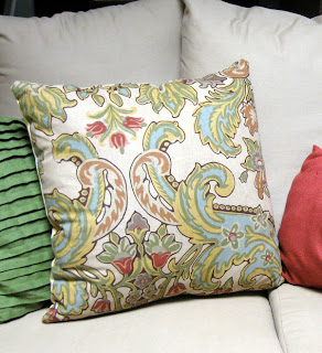 When I decided to sew a slipcover for my love seat, I also wanted some fun new pillows to brighten up the decor. Side note: my original goal was to sew slip covers for both the couch and love seat, but I have since decided to hold off on the couch. While I really like the look of my newly neutral tan love seat, the fabric is not as durable as I had hoped. And it was A LOT of work. So for now, I can live with one tan couch and one floral couch.
