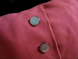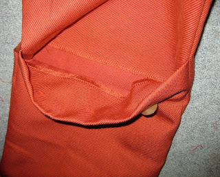 Here is what the inside of the flap looks like. I selected some big buttons, a little larger than a quarter, and sewed them to the outside flap. The buttons actually hold the top fold together.