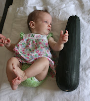And just for fun we took a picture of Lydia with a zucchini, like the one we have of Etta from 2 years ago.
